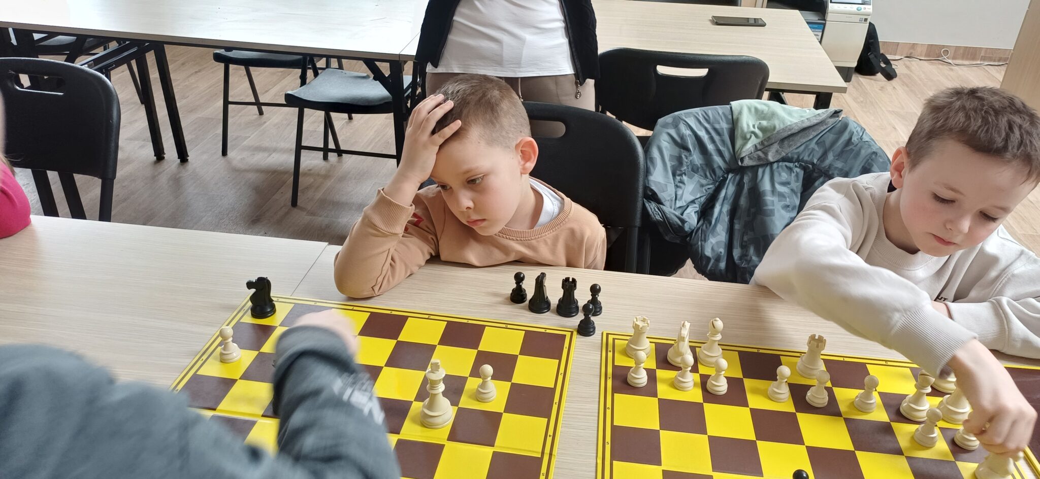 Serdecznie dziękujemy Panu Łukaszowi Płoszajowi oraz Panu Mokrzyckiemu za poprowadzenie spotkania i zaangażowanie w rozwijanie szachowych pasji naszych najmłodszych uczestników.