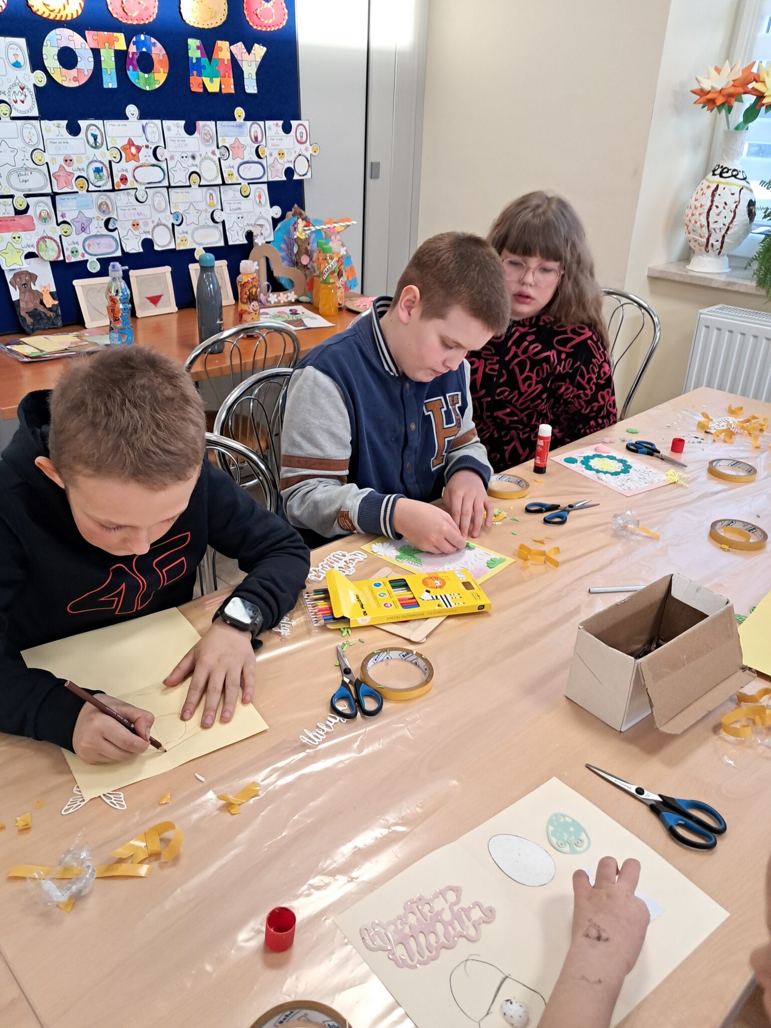 Efektem naszej pracy były barwne, starannie wykonane kartki świąteczne, które dzieci z dumą zabrały do domu, by podarować je swoim bliskim. To spotkanie pokazało, że tradycja wciąż może żyć – wystarczy odrobina zaangażowania i wspólne, kreatywne działanie.