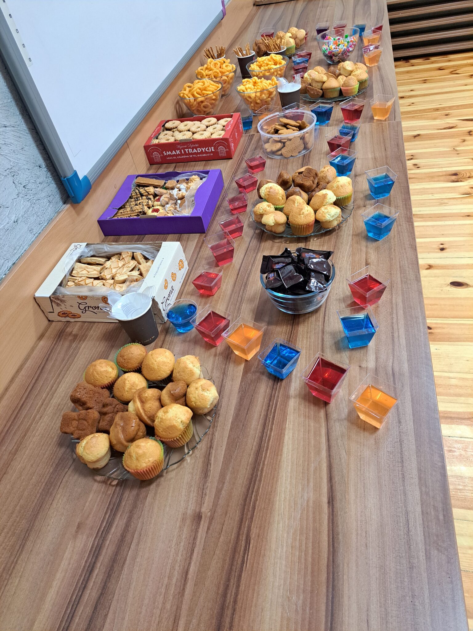 Nie zabrakło również słodkiego poczęstunku. Podczas przerw w zabawie dzieci mogły skosztować kolorowych galaretek, babeczek słodyczy i innych przekąsek.