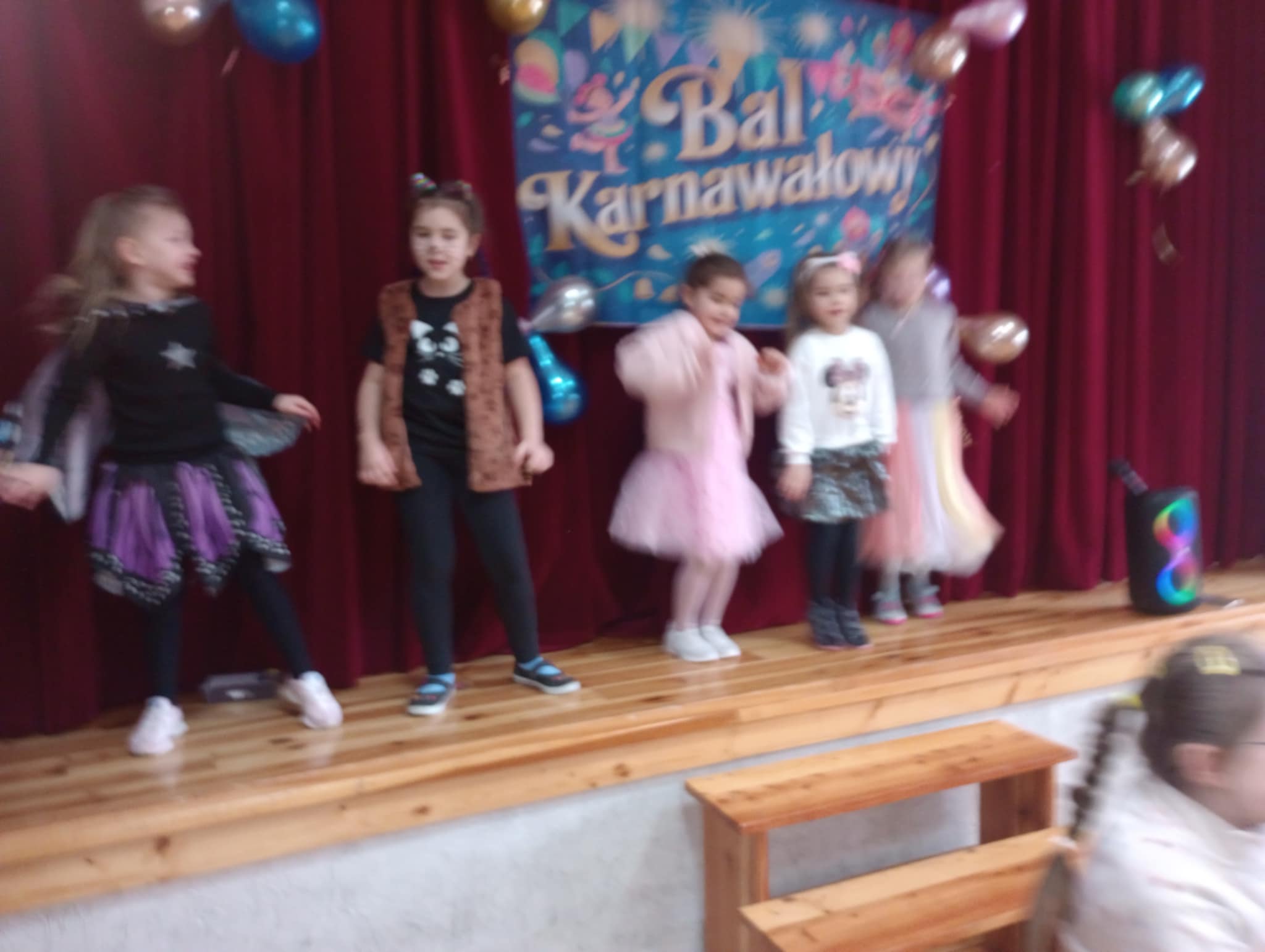 Dziś odbyła się wyjątkowa zabawa karnawałowa dla dzieci. Młodsze dzieci zachwyciły wszystkich swoimi bajkowymi strojami i z ogromnym entuzjazmem brały udział w zabawach. Starsi uczestnicy z kolei zaprezentowali młodszym swoje układy taneczne, pokazując im różne kroki i wspólnie świetnie się bawiąc.