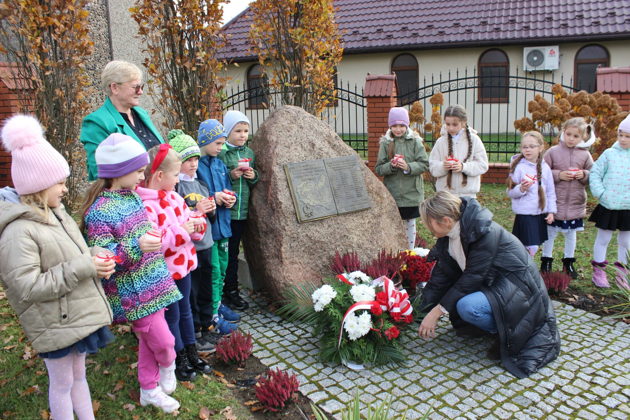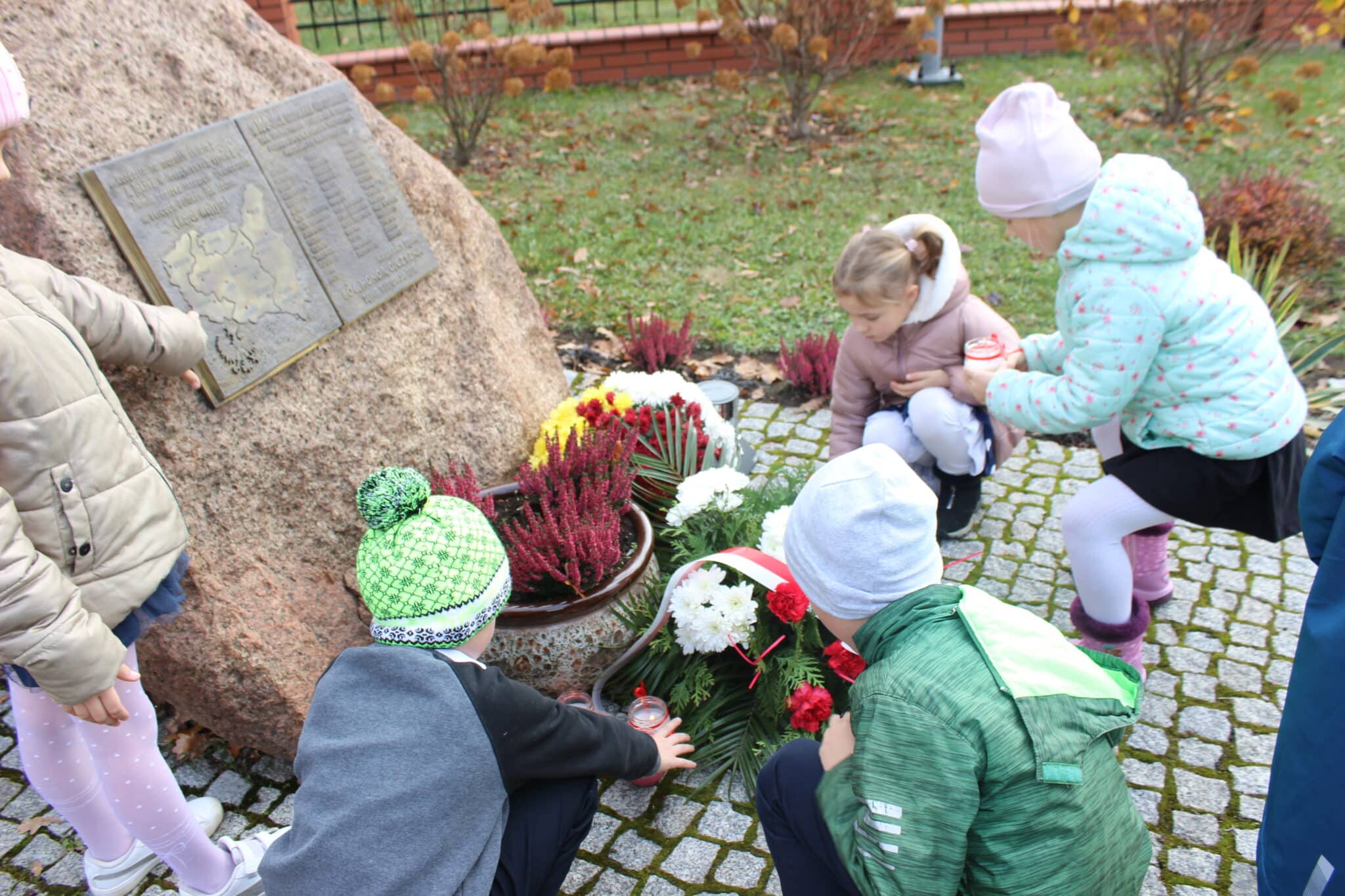 Z okazji Narodowego Święta Niepodległości 11 listopada odbyły się warsztaty patriotyczne, które przeprowadziłyśmy wspólnie z panią Magdaleną Wojtyną z Biblioteki Publicznej w Dębnie oraz dziećmi ze świetlicy szkolnej. Podczas zajęć uczestnicy wykonali świece w barwach narodowych, ozdobione czerwoną wstążką – symbolem miłości do Ojczyzny. Następnie wspólnie udaliśmy się pod pomnik upamiętniający przesiedlenia z Kresów Wschodnich, gdzie dzieci zapaliły swoje świece – symboliczny płomień pamięci.