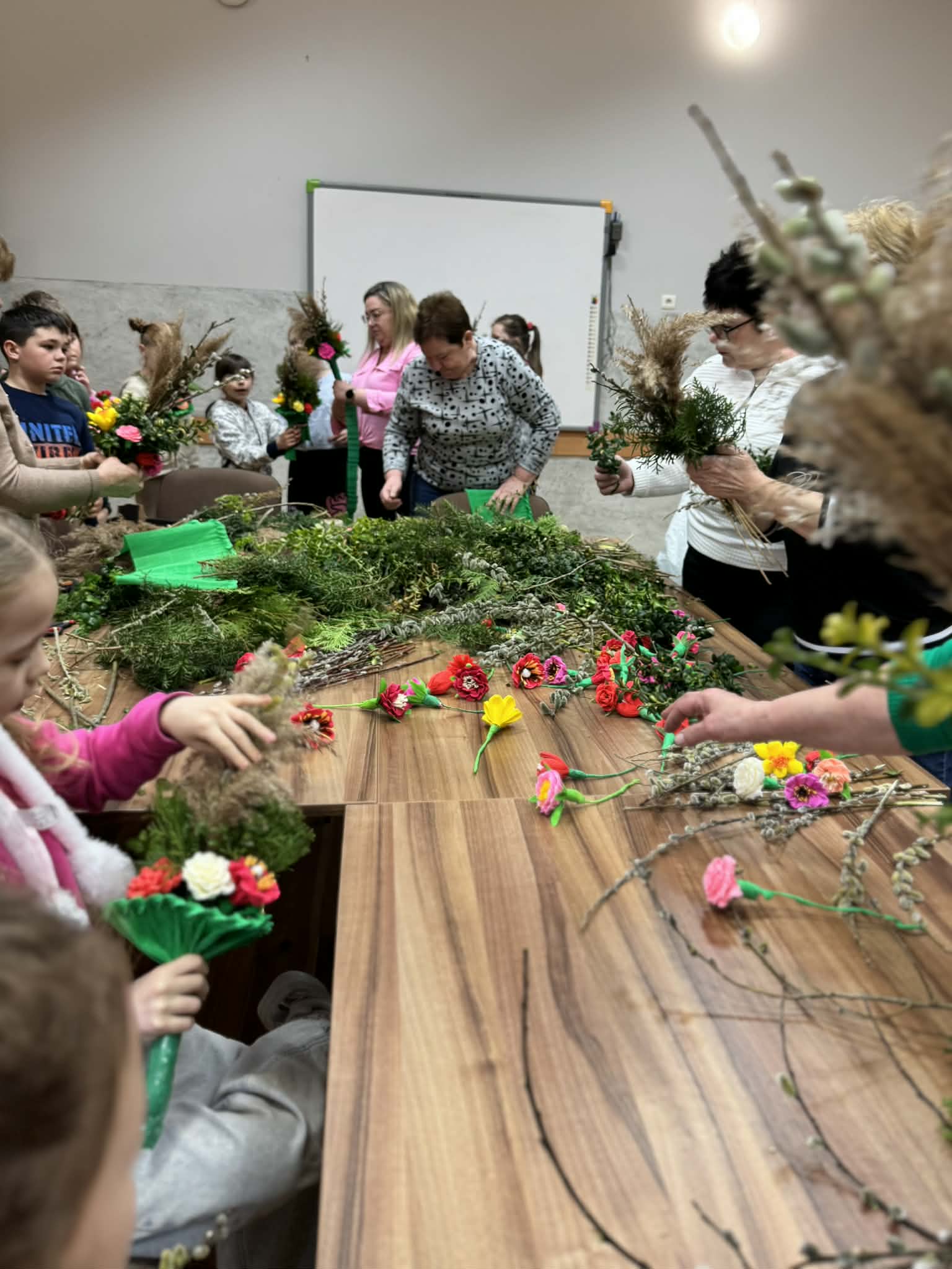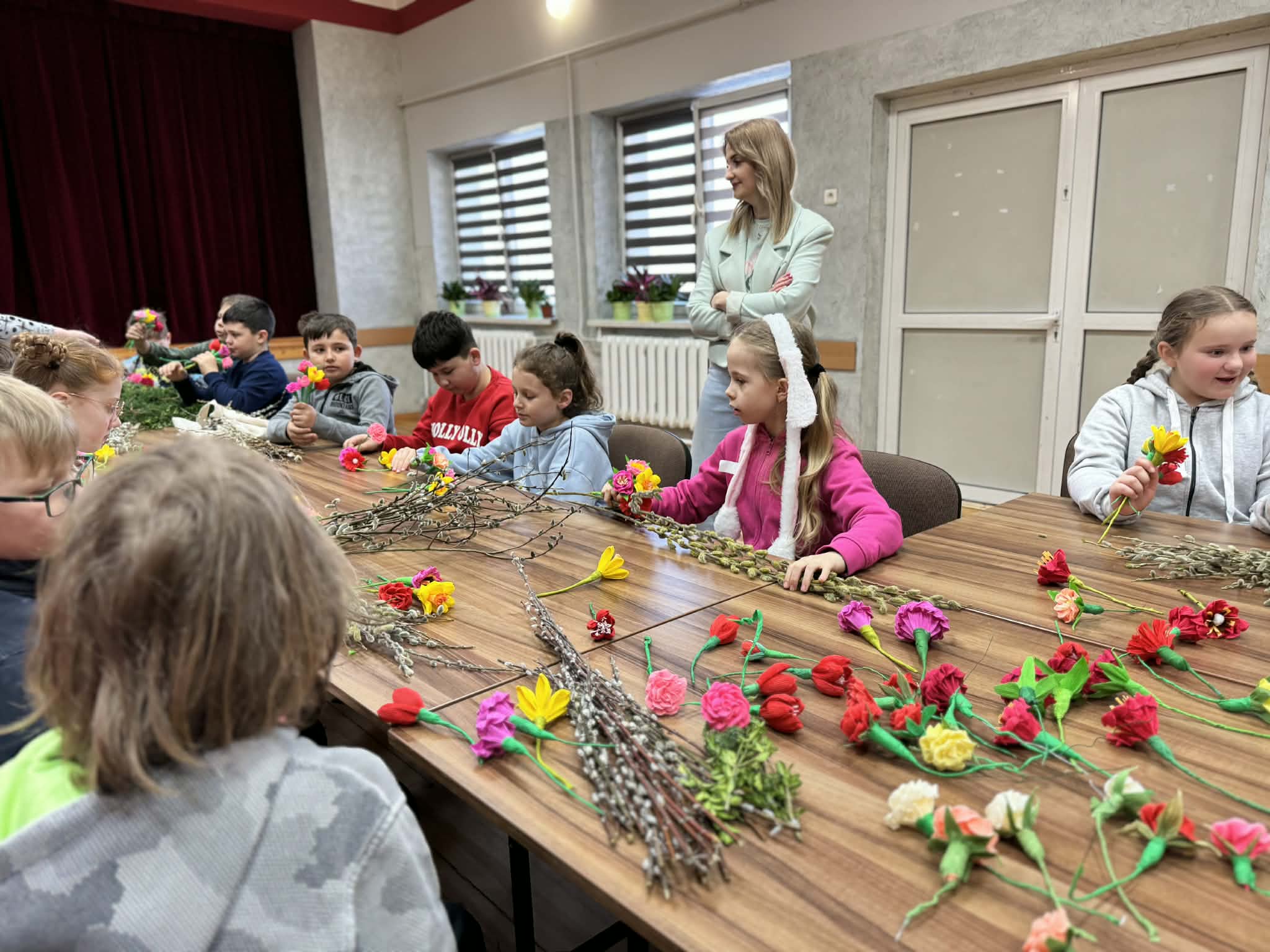 Zbliża się Niedziela Palmowa więc dnia 24.03.2026r. wspólnie z paniami z KGW w Chałupkach Dębniańskich oraz dziećmi z klasy III przygotowywaliśmy tradycyjne palmy wielkanocne. Było to piękne spotkanie pełne zaangażowania, uśmiechu i kultywowania naszych lokalnych tradycji. Wykonane palmy uroczyście zaniesiemy do kościoła w Niedzielę Palmową. Serdeczne podziękowania kieruję do pani Iwonki Kobiałka wychowawczyni klasy III dla pani Karoliny Sigda oraz dzieci. Dziękuję również paniom z KGW za pomoc i wsparcie przy tworzeniu palm.
